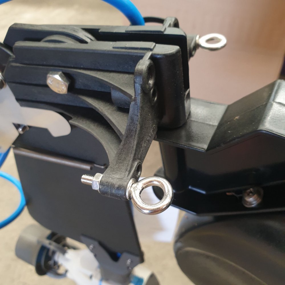 Fit eyebolts to the rudder headstock so you can easily remove the rudder or Bixpy Quick Swap motor (you also need carabiners on the rudder cords)